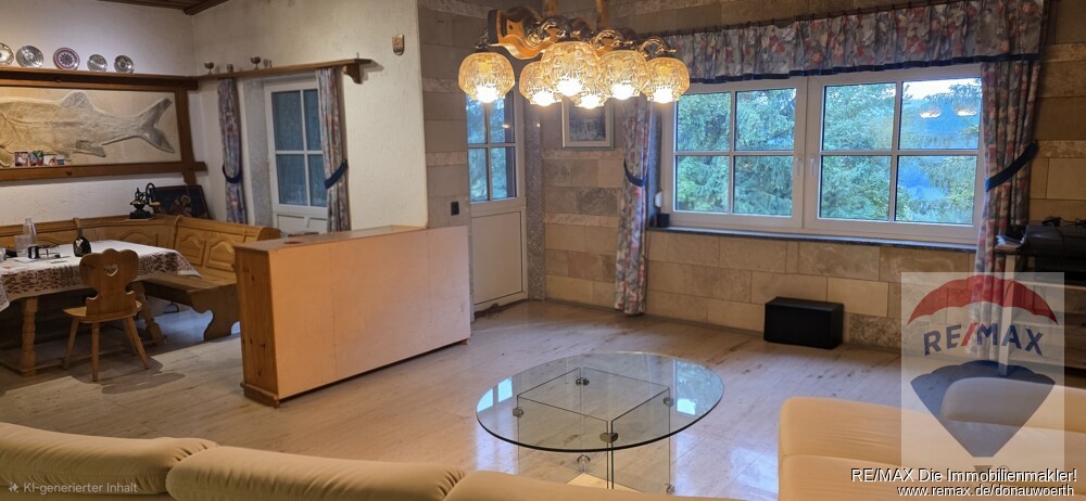 Entdecken Sie dieses vielseitige Wohn- und Geschäftshaus mit einer großzügigen Grundstücksfläche von 1400 m². Mit 195 m² + 81 m² Wohnfläche, 9 Zimmern und einem Balkon bietet es sowohl Wohnkomfort als auch geschäftliche Möglichkeiten.Dieses eindrucksvolle Wohn- und Geschäftshaus vereint Wohnkomfort mit geschäftlichem Potenzial. Auf einer Grundstücksfläche von 1400 m² erstreckt sich eine Wohnfläche von 195 m² und eine Einlieger- Ferienwohnung mit 81 m². Der einladende Eingangsbereich führt Sie in ein geräumiges Wohnzimmer, das durch große Fensterfronten viel Tageslicht bietet. Der angrenzende Essbereich ist ideal für gesellige Abende und bietet Zugang zum Balkon, der einen herrlichen Ausblick ins Grüne gewährt.