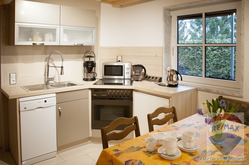 Die gut ausgestattete Küche überzeugt mit modernen Geräten und viel Stauraum. Das Haus verfügt über mehrere Schlafzimmer, die individuell genutzt werden können, sowie ein luxuriöses Badezimmer mit hochwertigen Armaturen.
