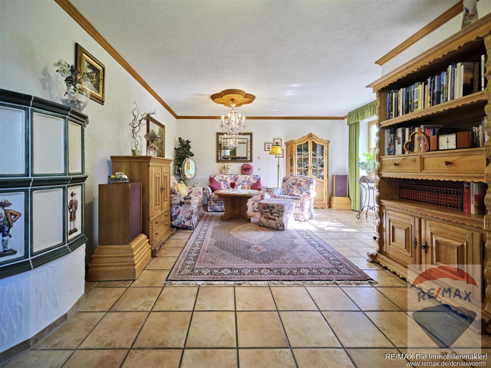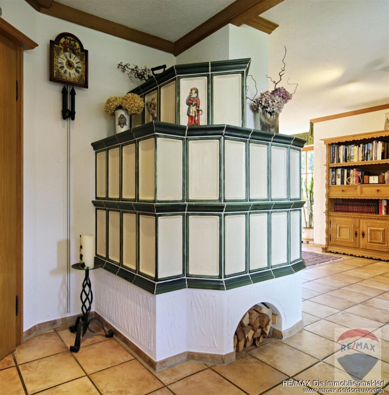 Große Fenster sorgen für viel Tageslicht und schaffen eine freundliche Wohnatmosphäre. Von hier aus haben Sie Zugang zur Terrasse und dem gepflegten Garten, der zum Entspannen und Spielen einlädt. Der große, gemauerte Kachelofen ist zudem ein absoluter Blickfang und sorgt in der Heizperiode für wohlige Wärme.