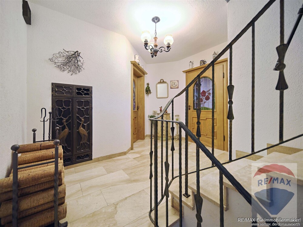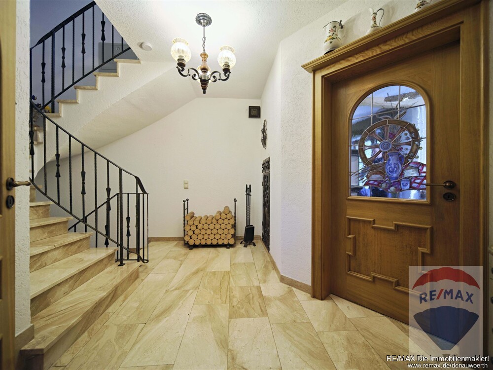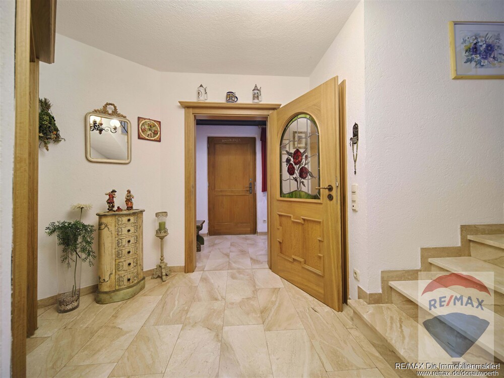 Beim Betreten des Hauses gelangen Sie in einen hellen Eingangsbereich mit Windfang und Gäste-WC. Durch eine weitere Tür geht es direkt in den offenen Wohn- und Essbereich mit angrenzender, funktional gestalteter Küche. Dieser Raum ist das Herzstück des Hauses und bietet viel Platz für gemeinsame Stunden mit der Familie im gemütlichen Erker.